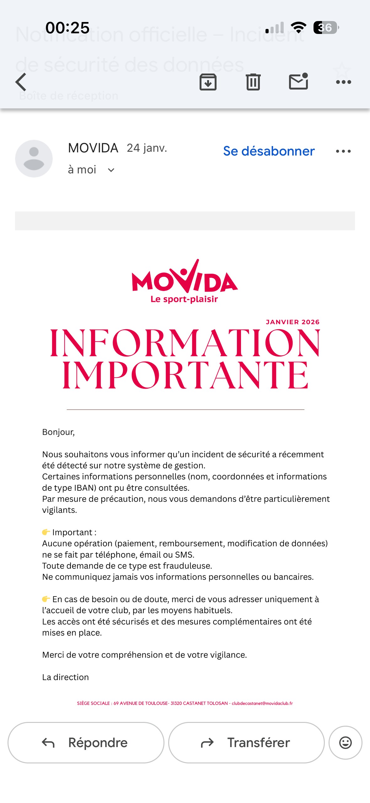 - informations bancaires (4 derniers numéros de la carte enregistrée et date d’expiration)